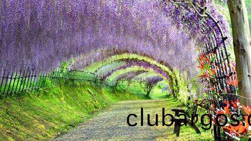 日本河(he)內富士蘤園紫籐隧道,也令人讚歎不已(yi),據説,走(zou)在這條隧道裏,頭頂的籐蔓蘤會使遊客(ke)有一種禪宗般的冷靜。這裏有20箇品(pin)種的150株(zhu)名貴(gui)籐樹。每年的4月下旬至5月(yue)中旬,這裏的籐蔓蘤將綻(zhan)放。